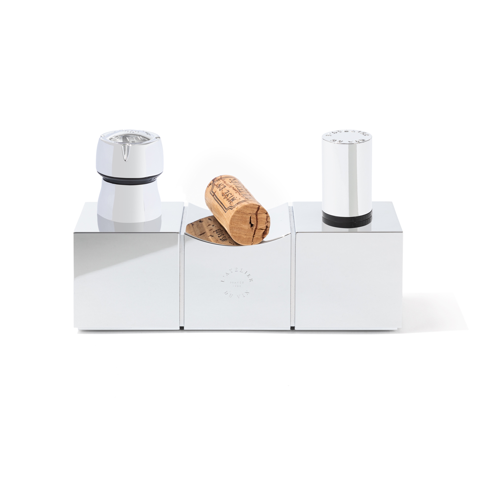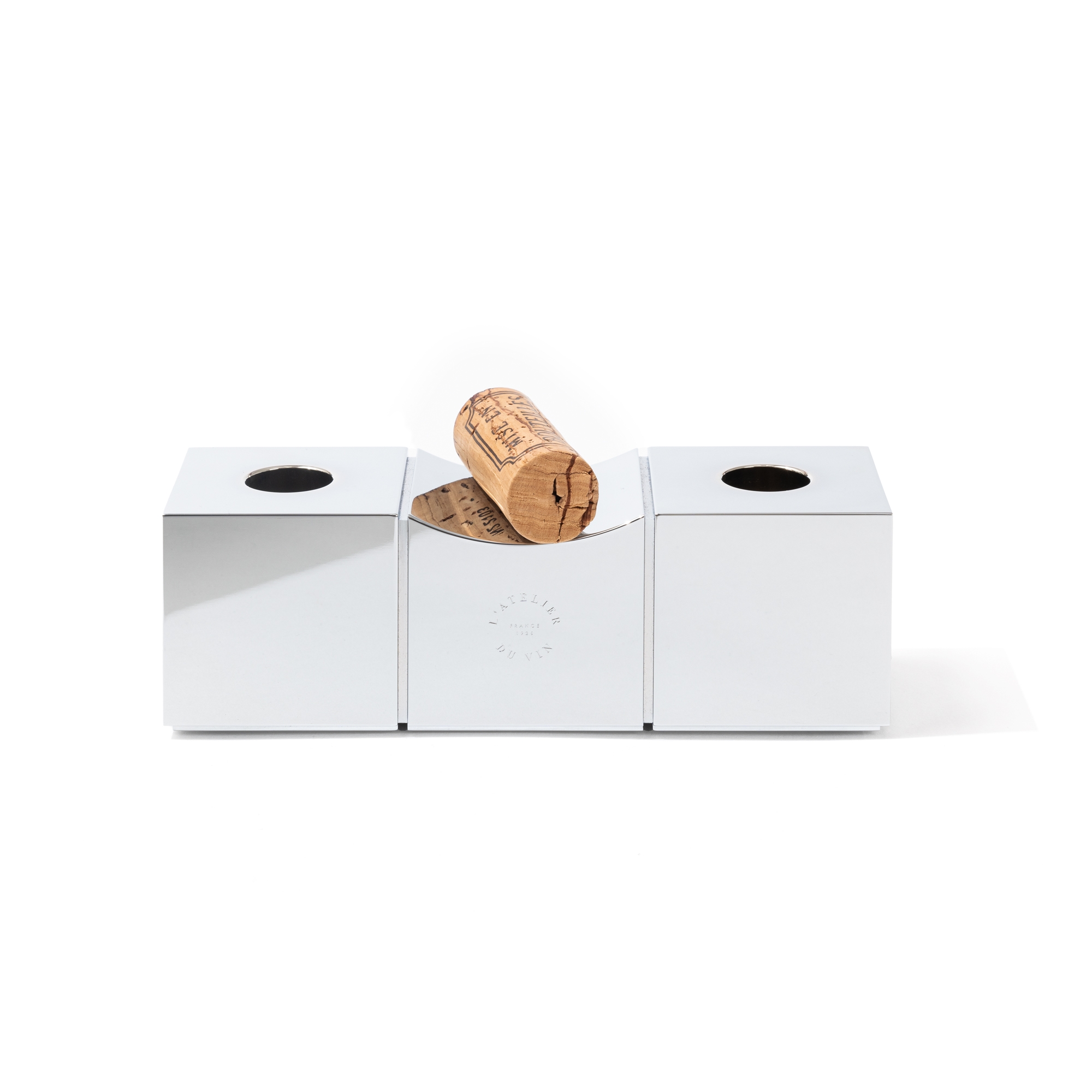 Bouchons Millésimés sera au cœur de toutes vos attentions œnophiles ! Une base pratique et sculpturale à la fois. Manufacturée en aluminium massif. Finitions artisanales aux reflets d’argent. Vous pourrez aussi y présenter vos bouchons « collector » de vins tranquilles ou effervescents. Tels des trophées de vos plus belles dégustations.