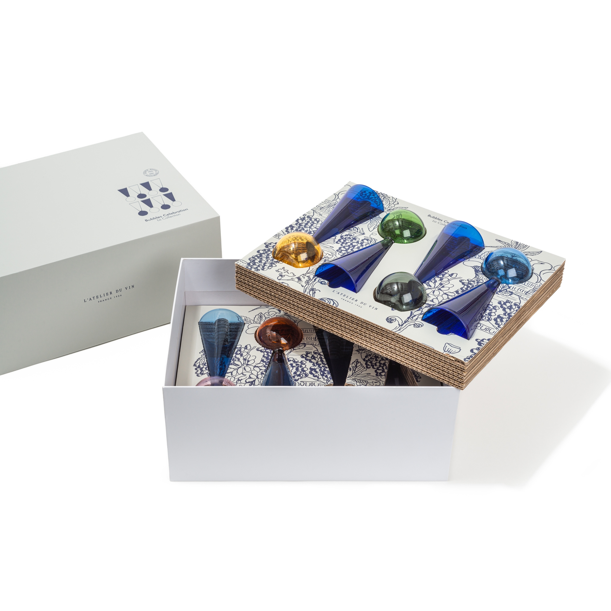 Le coffret Bubbles Celebration est un écrin élégant qui dévoile huit créations exceptionnelles. Chacune de ces flûtes à champagne raconte une histoire unique capturant l’essence de l’artisanat tout en embrassant des designs contemporains.