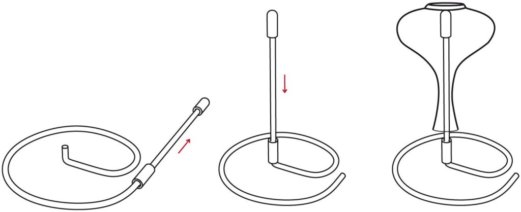 Grâce à ses embouts souples, il se monte (positon ON) et se démonte (position OFF) en un tour de main, pour pouvoir être rangé à plat ou accroché au mur après usage.