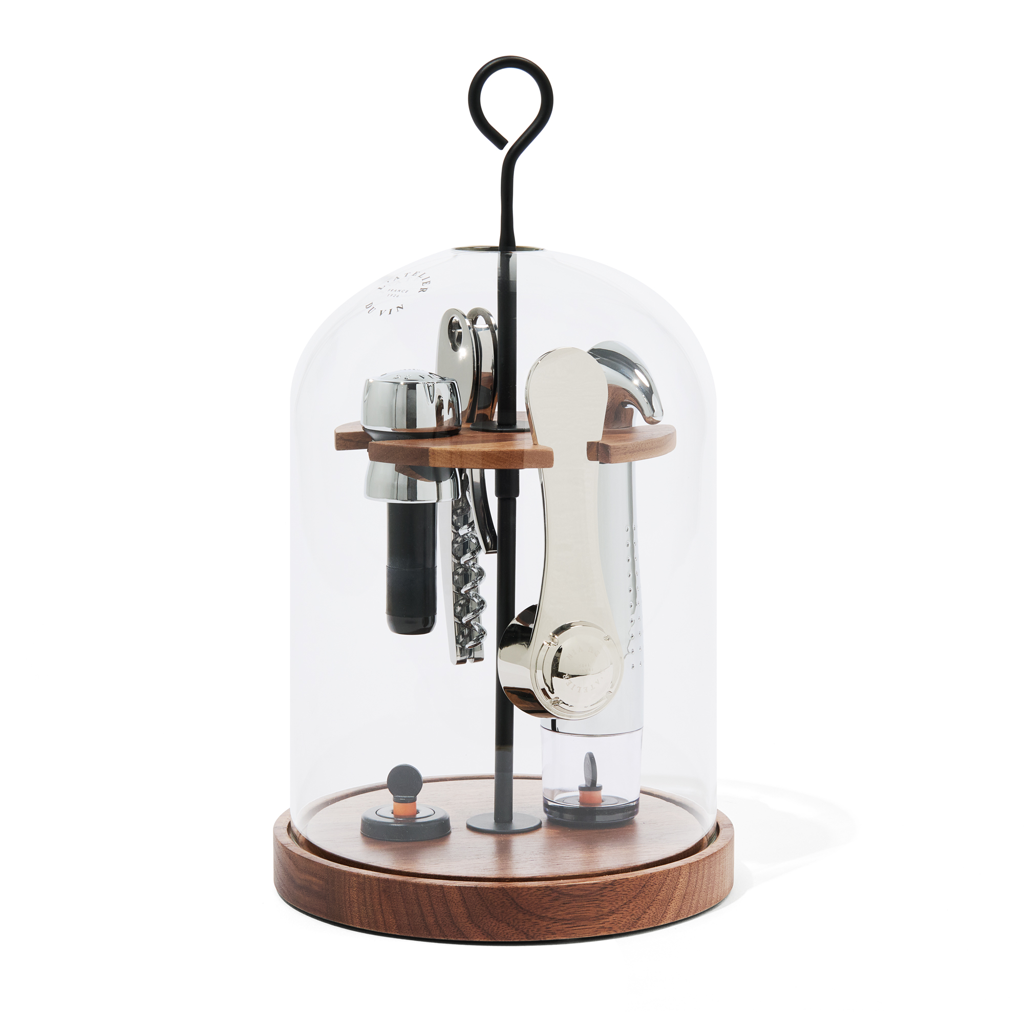 L’essentiel des outils du vin rassemblé sous un élégant dôme de verre. Nomade, Le Globe se porte et se transporte aisément.