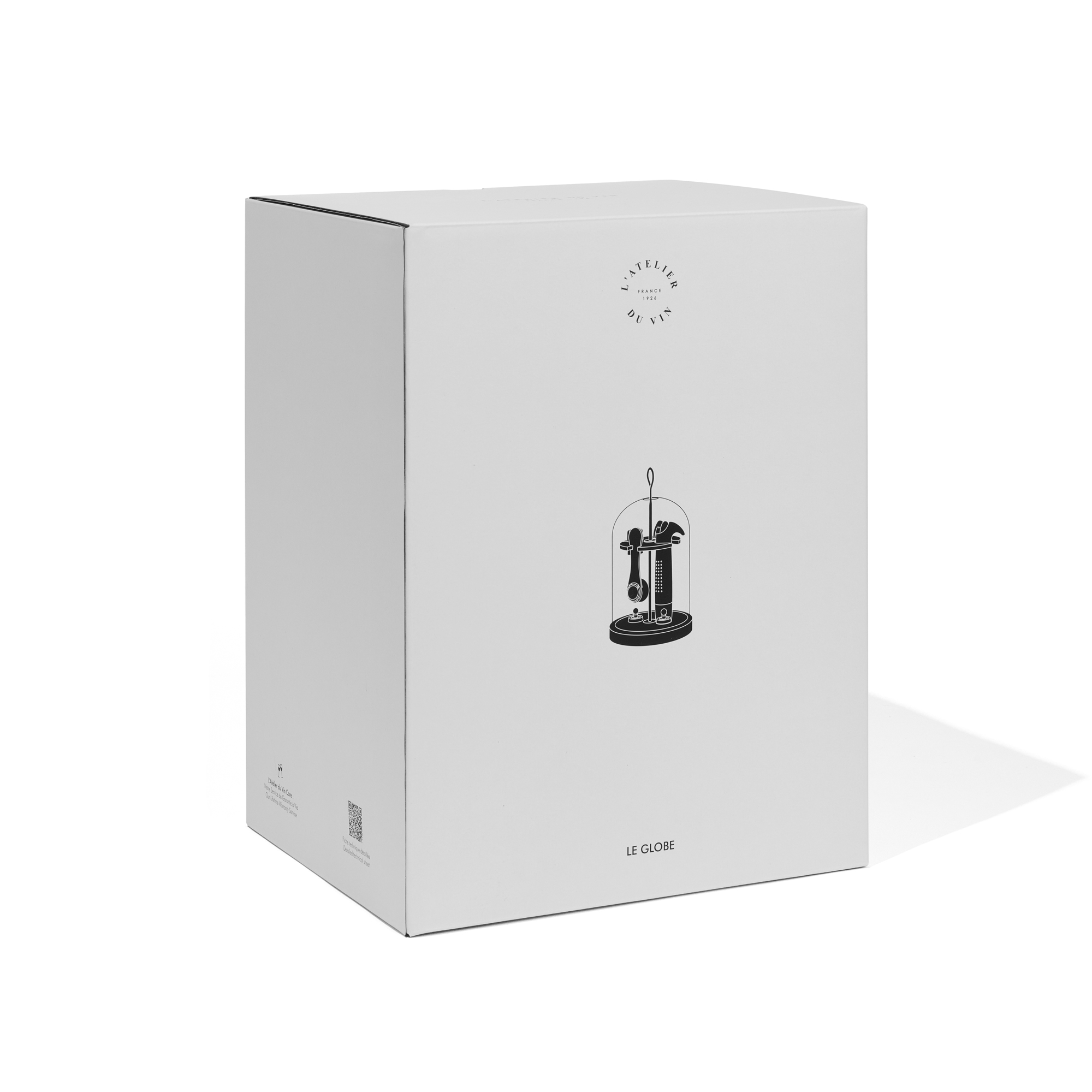 Les dégustations de vins grands crus, vins coup de cœur, champagnes ou vins pétillants éclatent de joie avec Le Globe. En effet, l’éclat de son dôme en verre borosilicate répond aux couleurs argentées des indispensables de L’Atelier du Vin. Pour le plaisir des yeux comme celui de la dégustation, le socle en bois de noyer massif accueille le Soft Machine Silver, la Pince à Bouchon, le Gard’Vin On/Off métal ainsi que le Bubble Cork Silver. Chaque pièce est unique et faite main. Le Globe se transporte aisément d’une table de cuisine au salon en passant par la cave et le jardin et apporte avec lui ses reflets qui répondront à l’éclat des verres et des bouteilles.